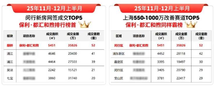 保利·都汇和煦当仁不让!自11月开盘以来,项目不仅强势霸榜闵行区销售金额、成交面积、成交套数榜单,更在上海550-1000万级改善赛道中脱颖而出,问鼎25年11-12月上半月销售三冠王,用硬核数据诠释何为“现象级热盘”。