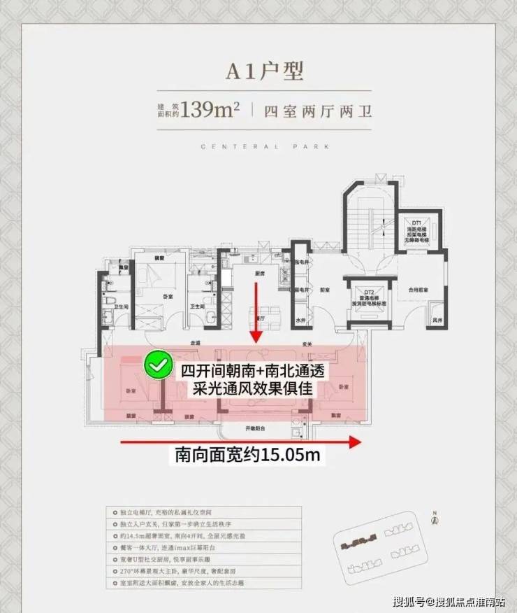 亮点一:经典四开间朝南+大横厅设计,超绝采光户型!