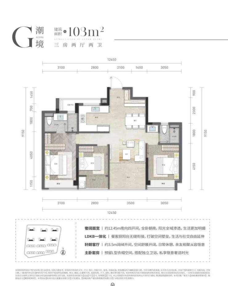 约 103㎡ 3 房 2 厅 2 卫:参考均价约 19800 元 /㎡,总价约 181-208 万