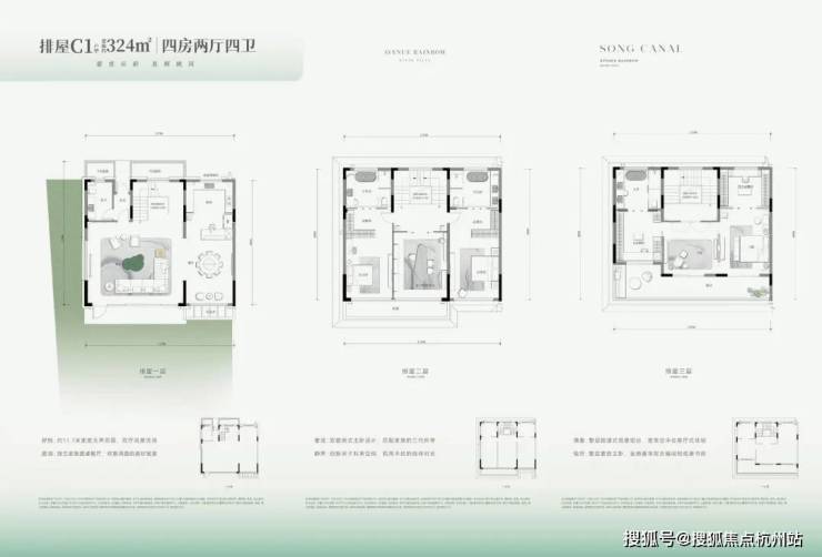 排屋:建面约285–380㎡(户户带屋顶花园+私家庭院)