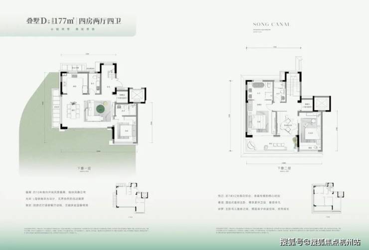 叠墅:建面约136–177㎡(上叠带露台,下叠带庭院+地下室)