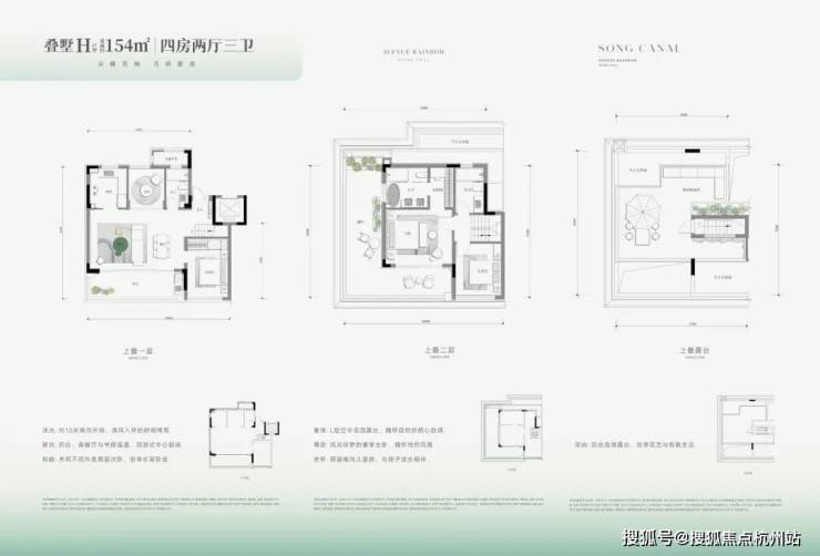 叠墅:4层(上叠3层+露台,中叠1层平墅,下叠2层+庭院)