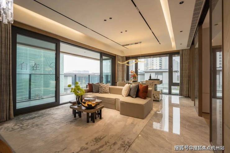 项目以宽屏窗墙比,大面积玻璃材质,构造立面轻盈无界感,并以简洁细致的窄边主义整体构图,同色系窗框处理,让建筑更具当代的清雅感受,整个楼盘既不缺优质醇熟配套,更不缺人流聚集。河印府一脉滨奥的占位,借风扶摇直上,且近承南站高铁新城利好,再叠加融杭都市圈桥头堡的赋能,未来“身价”不容小觑。