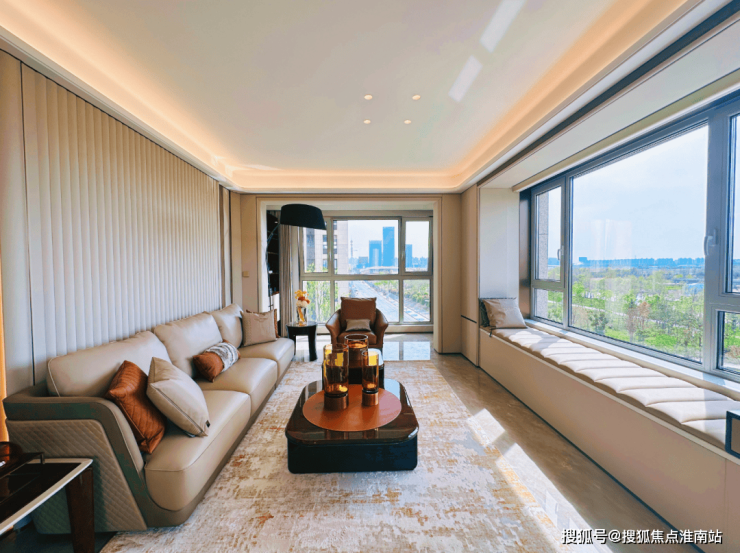 LDKB 一体化空间(客厅 - 餐厅 - 厨房 - 阳台)实现 270° 采光,西侧直面桃浦中央公园景观;主卧套房配备独立浴缸、双台盆及衣帽间,将酒店行政套间的奢享植入日常。