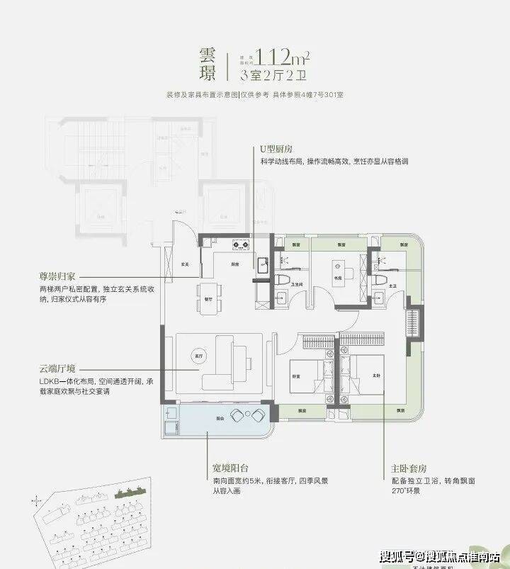 建面约112㎡三房:3+1房设计,适合都市菁英首改