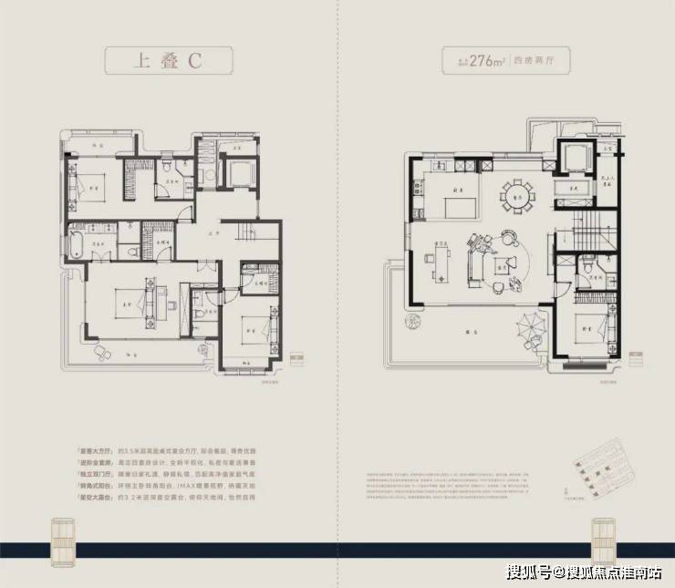 建面约210-280㎡纯4层叠墅,通过上叠北庭下叠南院,独立归家动线、约6m层高地下空间与全套房设计等,推动叠墅空间进化。精装上,嘉格纳、博世等百年品牌加持,尽显极简优雅。