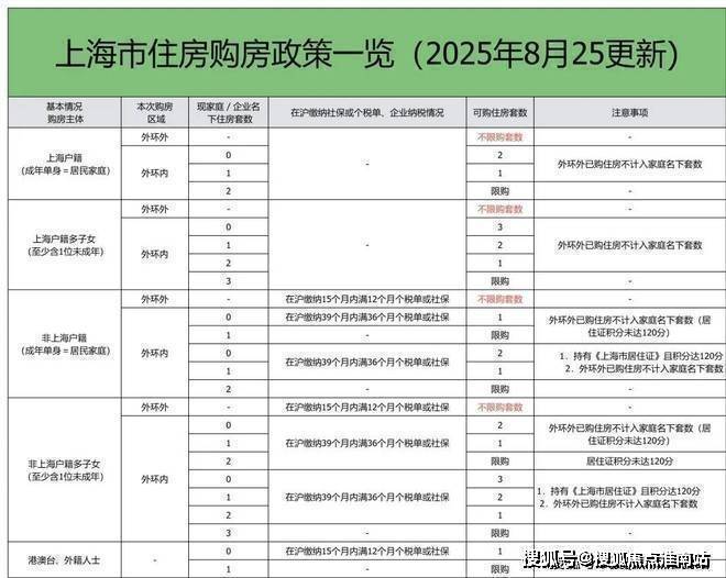非沪籍居民家庭/单身人士:社保/个税满1年可在外环外不限购;满3年可在外环内限购1套