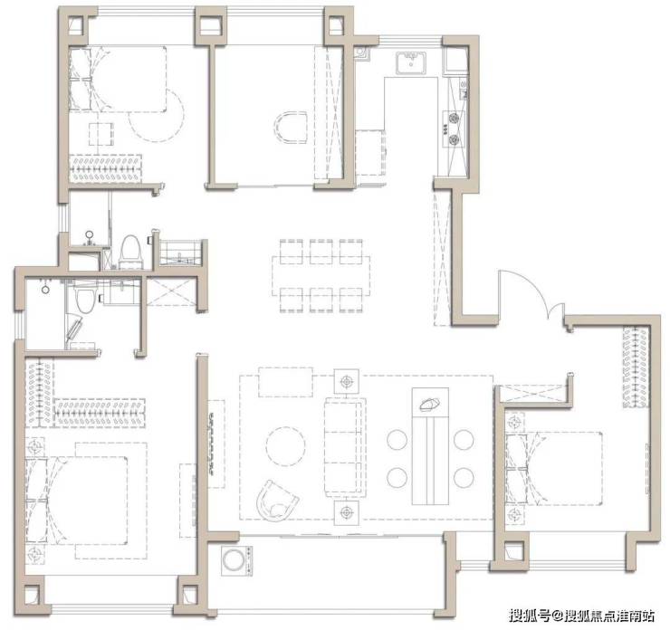 大横厅的设计,让这个户型拥有堪比别墅的南向采光面,这个尺度感以及采光通透度非常出众。