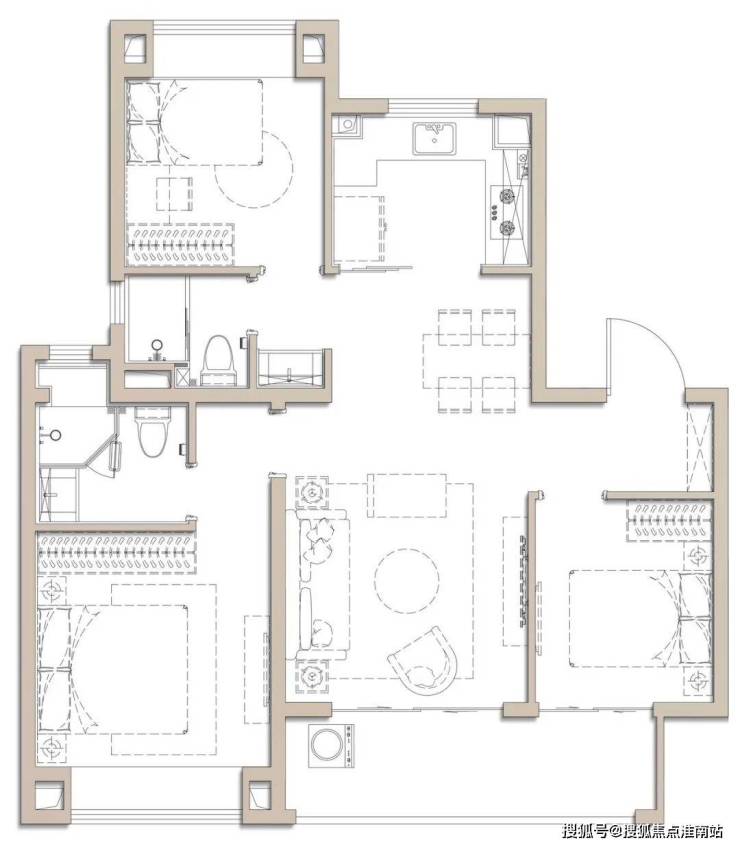 细节方面,入户玄关+主卧套房+客卫干湿分离,这个户型几乎做到了一个好户型应该有的所有。