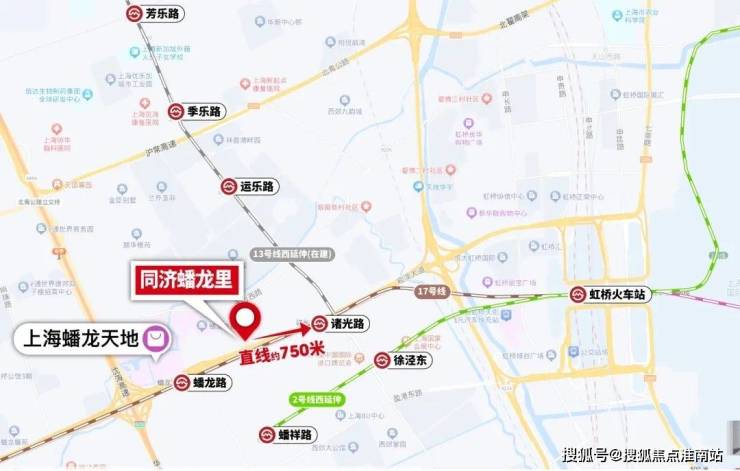 同济蟠龙里距离17号线蟠龙路站/诸光路站步行约750米,整个虹桥虽然新房众多,但真正能称得上步行直达地铁站的轨交盘,寥寥无几。