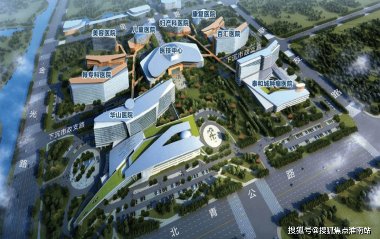 距离项目约5公里的新虹桥国际医学中心,是虹桥打造的面向世界的权威医疗窗口,整个园区占地100公顷,一期包括华山医院(已开放)、肿瘤医院(在建)、百汇医院(在建)等共8家综合性专科医院,还有二期规划中的协华脑科医院、圣康达医院、绿叶利兰医院等!