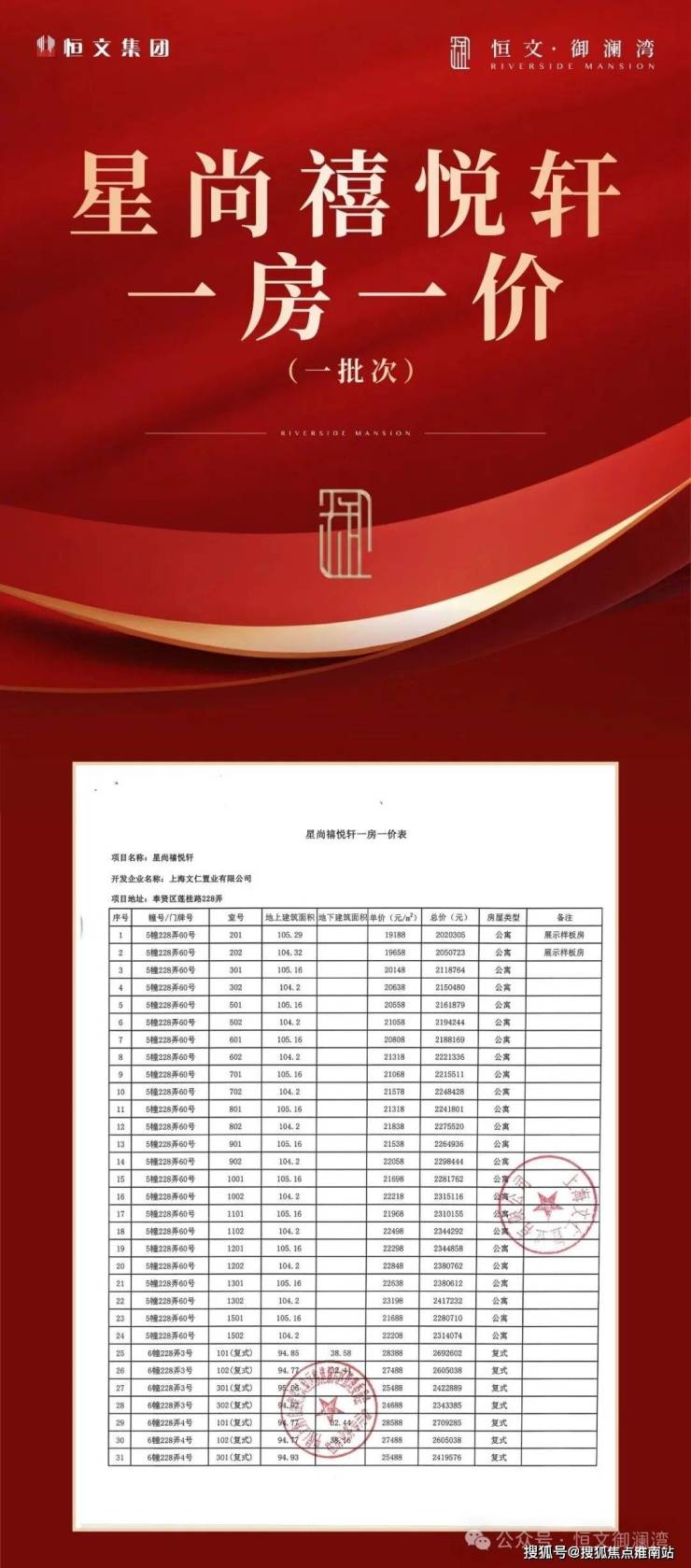 往下阅读项目一房一价表!