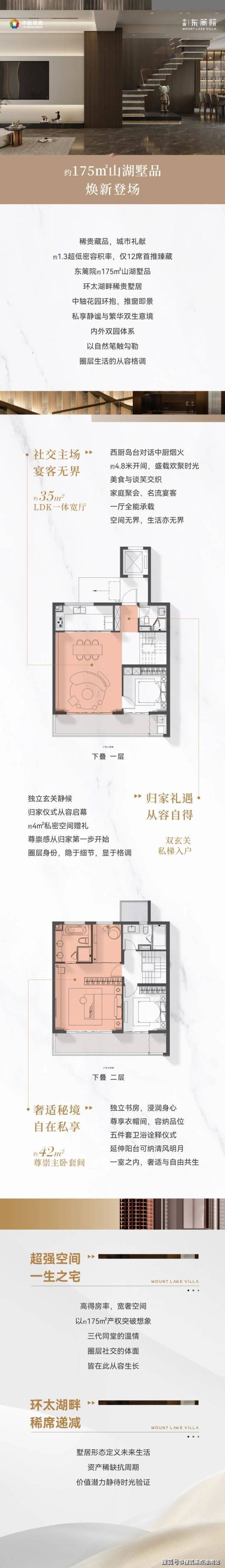 中旅·东篱院是苏州吴中区东山镇的纯叠墅社区,由央企中旅集团开发,主打118-175㎡的湖景叠墅产品,总价140万起,2026年3月精装交付。项目紧邻太湖,容积率仅1.0,绿化率37%,下叠带庭院,上叠配露台,设计融合现代与传统元素。