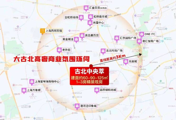 商业配套:自带2万方艺术商业中心,周边3公里内覆盖黄金城道、高岛屋、尚嘉中心、港汇恒隆、万象城等高端商圈