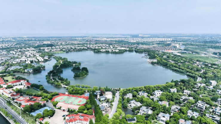 直面大淀湖一线湖景,双水系环绕,生态基底优越,适合湖居养老与周末休闲