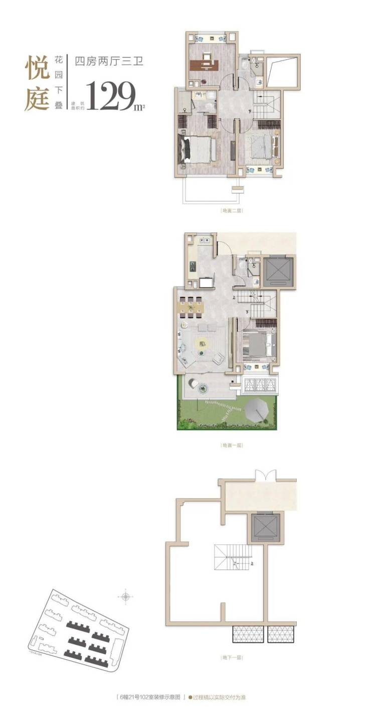 117–129㎡中式叠墅:地上两层+地下拓展空间,尺度阔绰,适合多代同堂