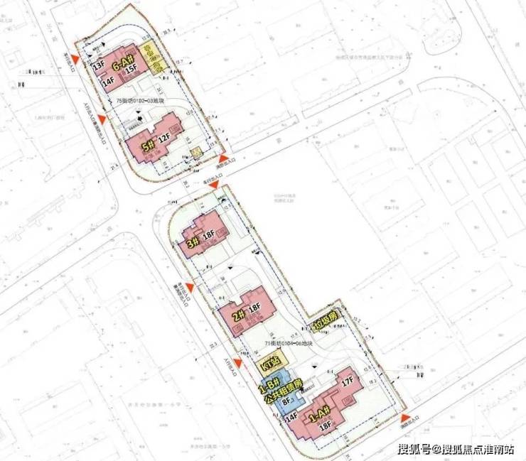 五幢12-18F的商品住宅和1幢8F的公共租赁房,北地块容积率2.5,南地块容积率3。