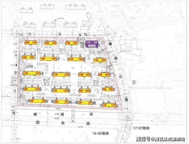 17-07地块:占地面积约2.76万方,总建筑面积约10.96万方,容积率2.5,拟建6栋18F高层住宅、1栋18F保障房、1栋14F酒店、3栋2-3F商业以及若干配套用房!