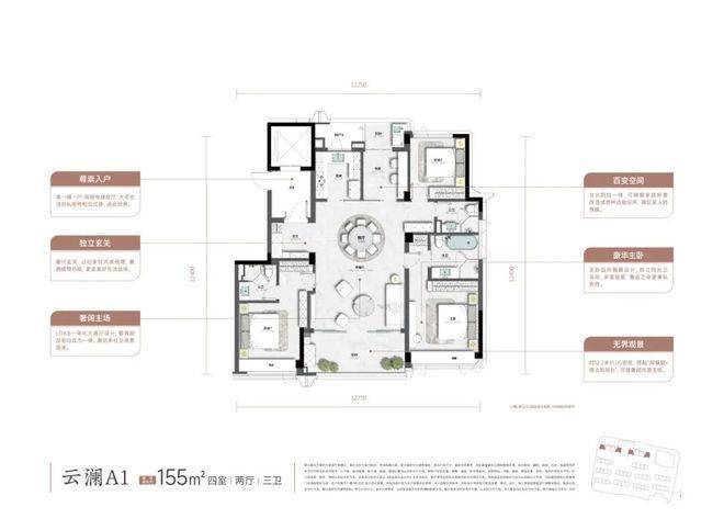 除却三大越级领先的产品力,望云庭室内空间打造同样亮眼,此次将同步开启的建面约155㎡大平层样板间,有着类一梯一户、高利用率、无遮挡采光、准三套房等诸多优点,在精装标准上,智能家居、全屋地暖等配置一个也不少,丝毫不逊千万级产品。