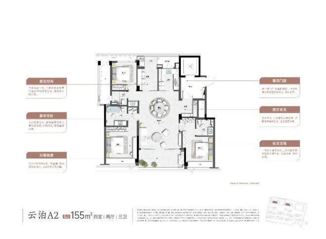 建面约155㎡户型:首先,空间利用率太顶了。双阳台、双飘窗、设备平台、电梯前室全配齐,实际体验感完全不输180㎡的大平层,是真正的小面积大空间典范。其次,归家动线方面,类一梯一户设计、外加宽敞的电梯前厅,直接把尊贵感拉满。