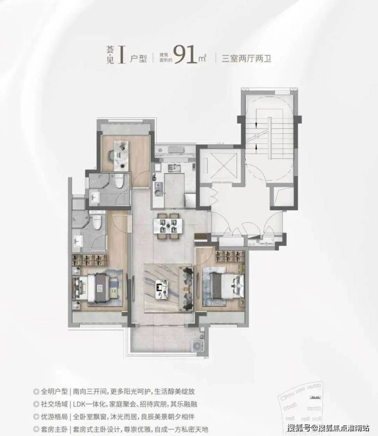总价400万级预算错过不再有的高性价比之选!市面上90㎡左右户型两房居多,华发海上都荟建面约91㎡直接3房一步到位,并且有2卫配置,主卧进阶套房,功能性远超同价位竞品!