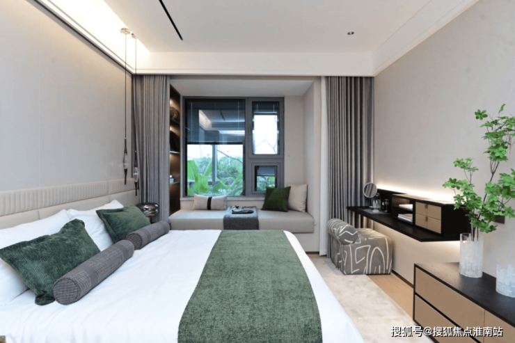 主卧豪华套房,南向面宽约3.7米,进深约4.7米,南向连接超大景观飘窗,奢阔大气感扑面而来;南向客房开间约3米,配备亲景阳台,拥有更好的采光以及通风效果;北次卧北侧连接宽约1.4米的阳台,可自由改造。