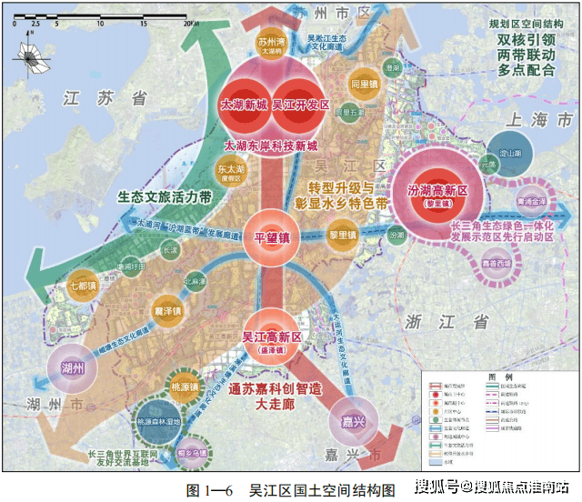 我们从吴江区国土空间规划实施方案中了解到,根据长三角一体化协同发展战略的指导,吴江将构建“双核引领、两带联动、多点配合”的空间布局结构。