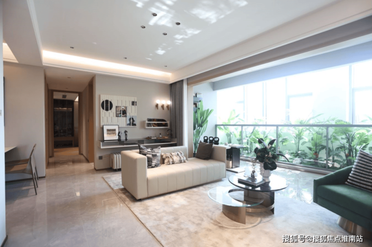 同样是双开电梯入户,私享独立的电梯入户厅,还设置了独立入户玄关;四开间大尺度朝南,约4.95米的客厅开间连接约7.95米的超大景观阳台,生活更加宽敞舒适。