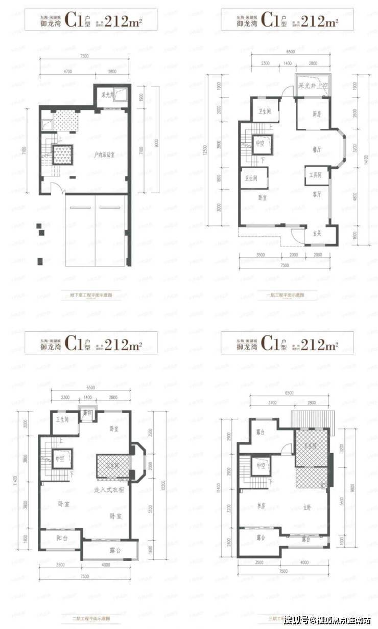 户型面积:171㎡、195㎡、212㎡、243㎡(毛坯交付)1