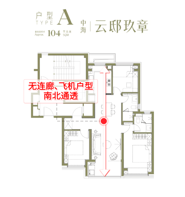 104㎡户型:26套,经过市场验证的网红户型,无连廊飞机3房户型
