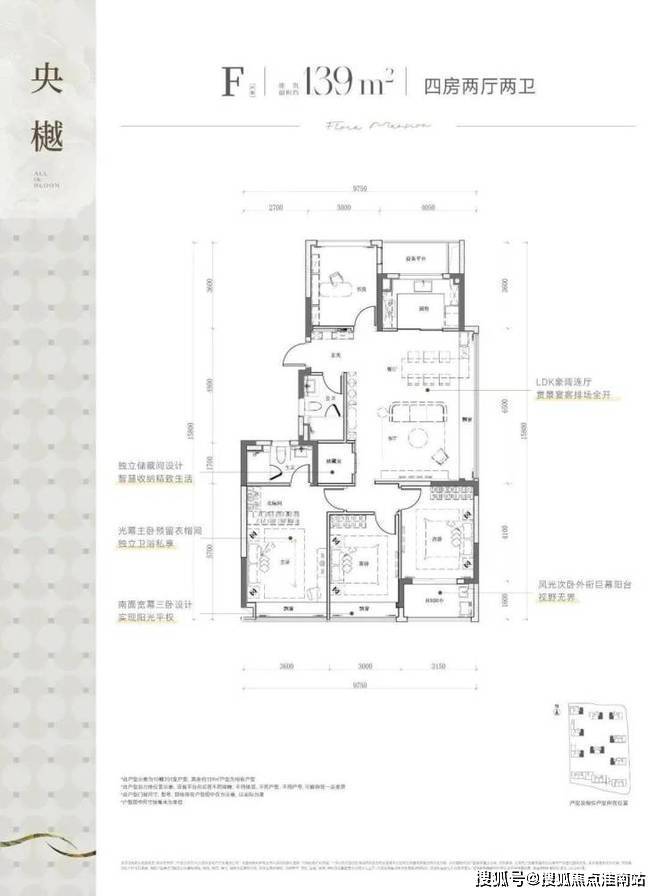 主力户型 :建面约99-139㎡,涵盖三房至四房,包括99㎡三房两卫、139㎡四房两卫等,部分房源采用封闭式阳台设计,得房率超90%