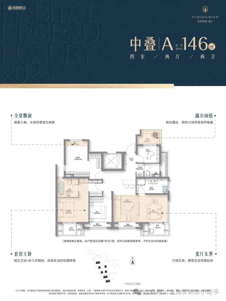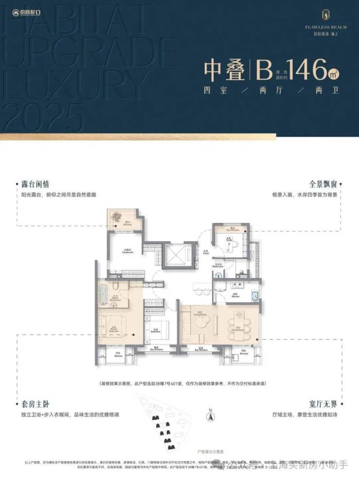 此外,项目还推出了建面约146-152㎡滨水叠加,同样进行了空间革新,户型图如下↓
