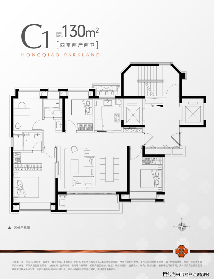 华发虹桥四季由国企华发集团开发,总建筑面积约6.6万㎡,容积率2.2,绿化率35%,规划9栋14-18层住宅,共609套房源,预计2026年9月精装交付。项目位于大虹桥辐射圈核心位置,距17号线嘉松中路站仅700米,形成"轨交+高架"立体交通网络(崧泽高架/G50沪渝高速),直达虹桥枢纽