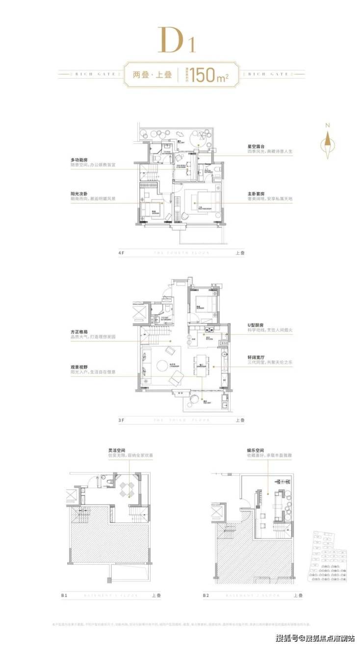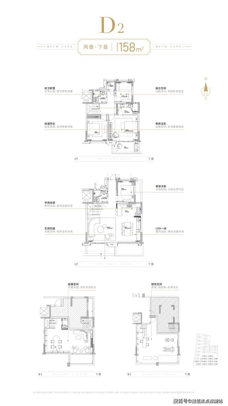 建面户型总价区间核心亮点适配人群150-158㎡四房两厅三卫(下叠)约1000-1200万南向大花园、北入户花园、2层地下空间(可做影音室/健身房)二胎/三代同堂150-158㎡四房两厅三卫(上叠)约980-1100万星空露台(约30㎡)、阁楼空间、全景落地窗追求空中庭院的改善家庭