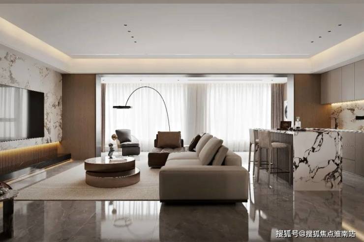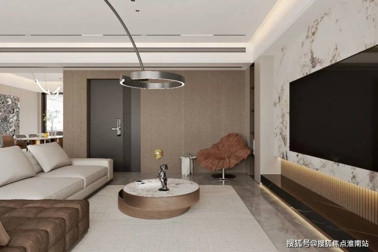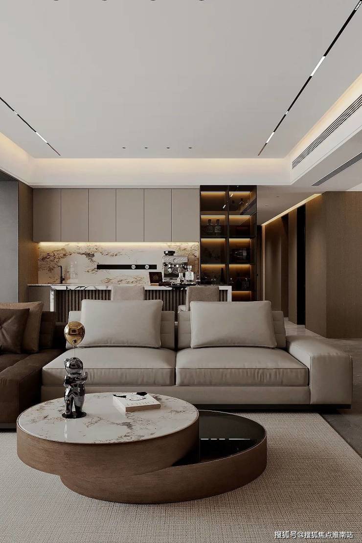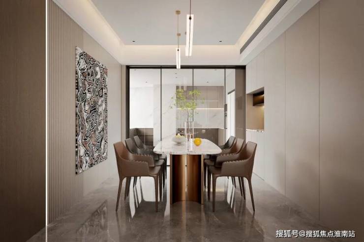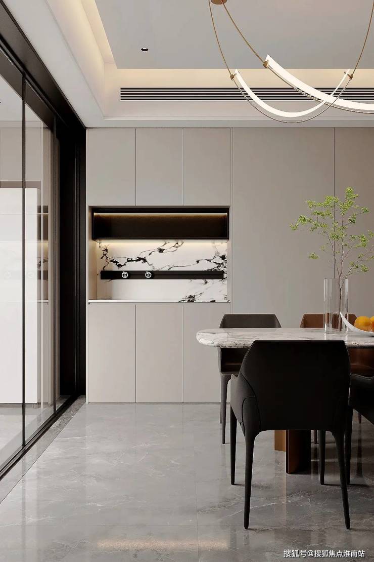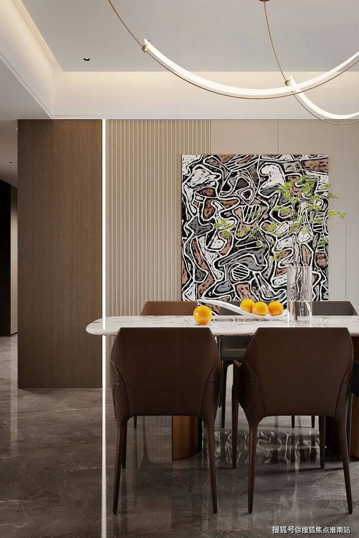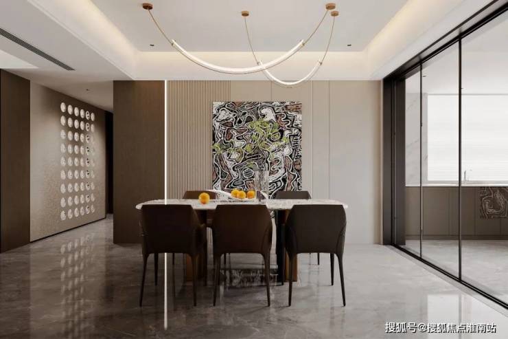 超大客餐厅空间,流畅的运动轨迹,提升生活质感。悬浮顶+无主灯设计,还原轻奢质感,营造多种灯光氛围多种材质搭配使用,让空间设计不再单一枯燥,丰富视觉体验。