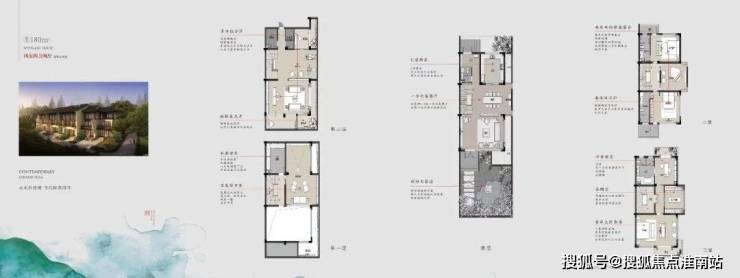 Take the model house with a building area of about 180 square meters as an example, the design is four rooms, two rooms and two bathrooms, the first floor is a guest restaurant and kitchen, about 5.8 meters wide, generous, and the south can also enjoy 50-300 square meters of private courtyards;