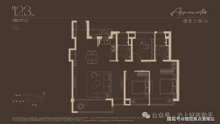 建面约123㎡3房户型,户型方正,三口之家的改善进阶之选!巧妙预留X空间,既可成为客厅空间的延伸,也可独立成室,实现更多功能想象。约12.5米南向面宽,搭配270°宽景阳台,窗外美景一览无余。