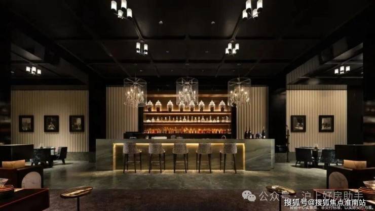 建筑面积约1500m²恒温泳池会所及落差达约10米的水幕下沉式园林的打造,在奢石、臻材等元素的空间应用中,让显贵世家的社交场景,相映于粼粼碧波的柔光之中,于方寸之间游离世外。
