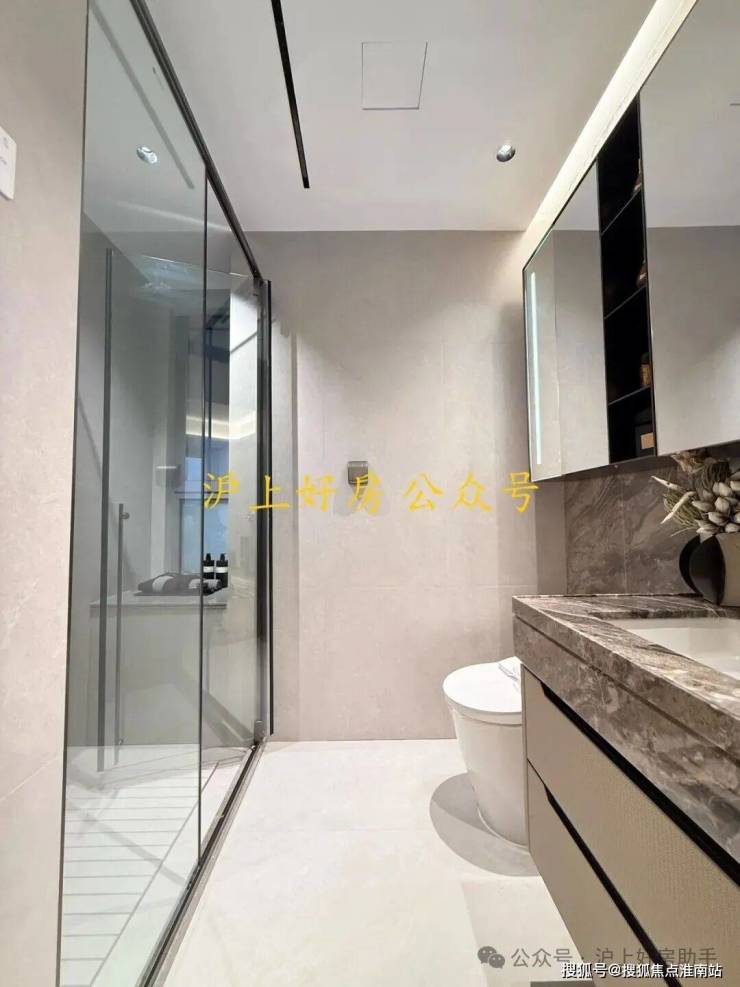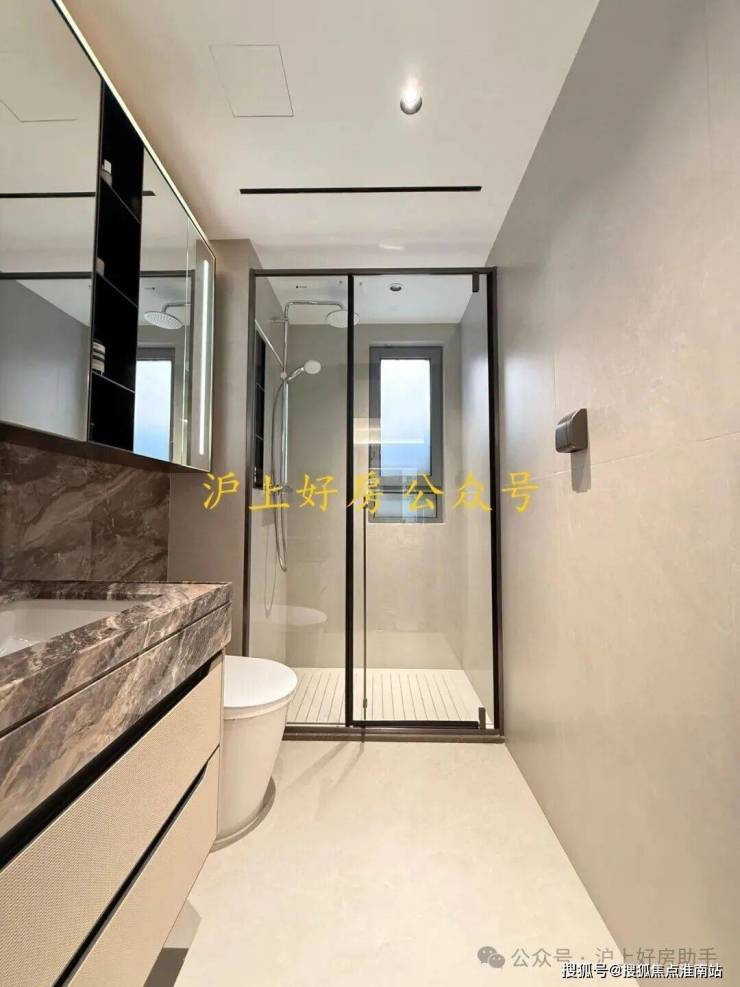 约19米四开间朝南,南北通厅设计,十字中轴洄游动线,演绎云端平墅藏品;双套房全明卫设计,大幅提升居者生活品味与格调;主卧预留步入式宽敞衣帽间,双台盆设计,浴缸冲淋设施齐备,满足男女主人各自所需。