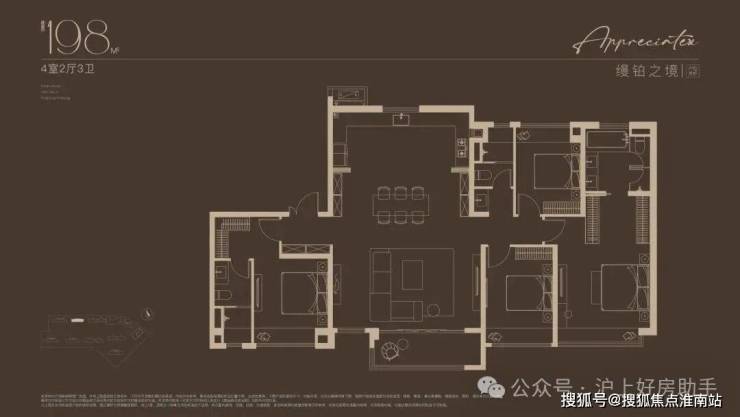 建面约198㎡4房户型,嘉定“收藏级”传世大宅!塔尖人士的挚爱之选!2梯2户的设计,子母双开门礼序入户,私密尊崇门厅,彰显尊崇生活仪式感。