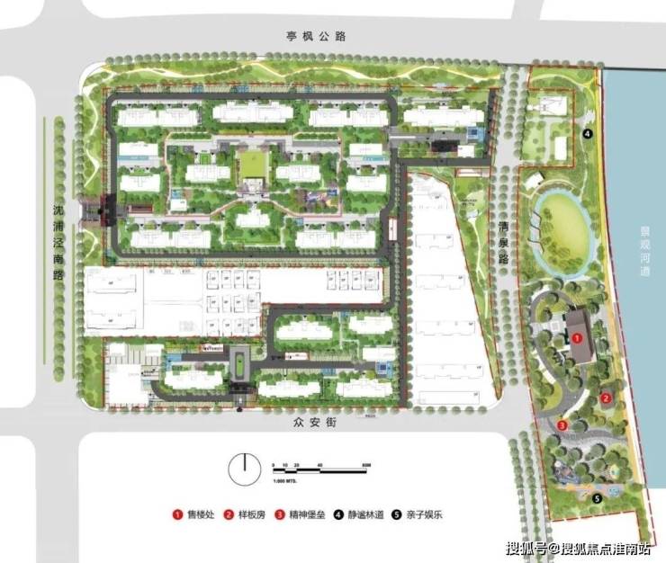 项目东侧紧邻黄浦江的上游河道——掘石港,将打造全长约2公里的西岸绿化景观步道,约1.5公里长的跑道、沿河景观大道,人文走廊、儿童老人休闲区等小品也将穿插其中。