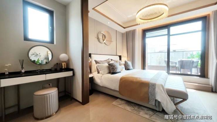 该户型二楼南向卧室有多面采光,这在上海极为少见。超长露台连接起两个卧室,如果家里有两个孩子,各自一个卧室,共通露台供其玩耍,别提有多开心。