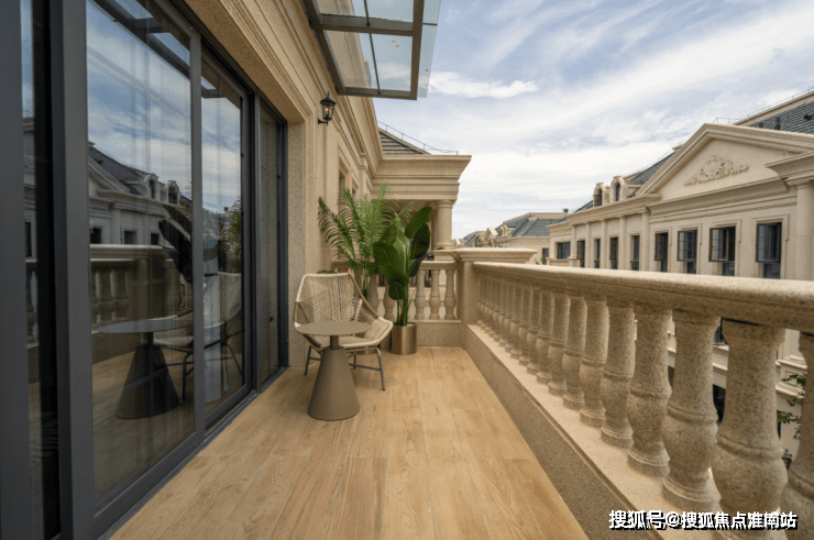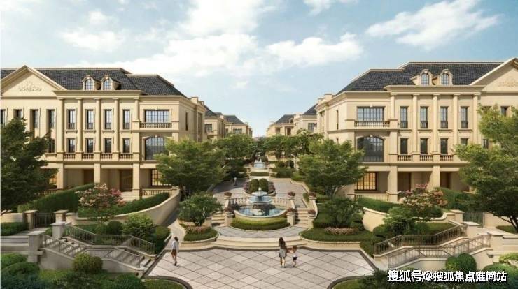 整个园区,以经典的绿城法式墅区景观大中轴贯穿,占地约1000多㎡,联排建筑的设计,融合了中国传统院落布局与法国枫丹白露宫的审美,外立面大面积采用全石材干挂,檐口等细节部位使用仿石。