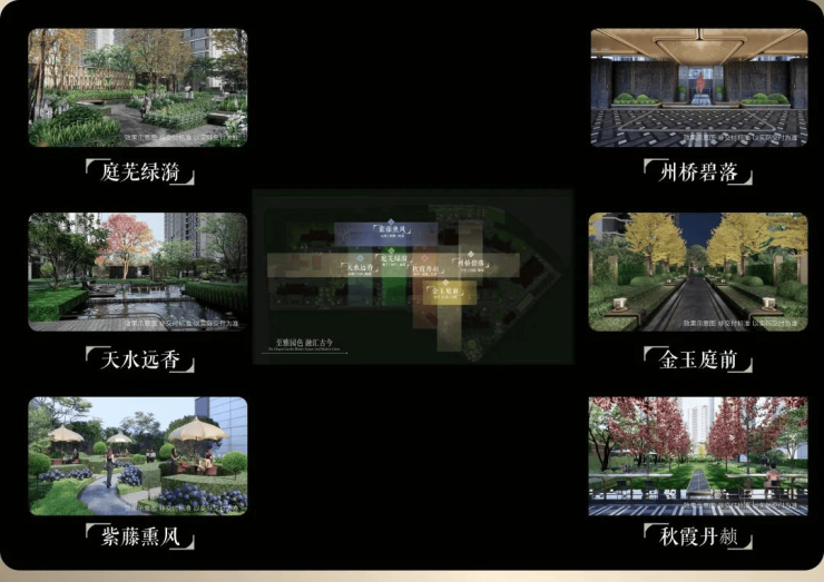 项目园林对轴线的运用同样出彩,堪称神来之笔的“双轴六境”,由“礼序归家轴+景观漫步轴”纵横交织,融在地文化,以“非遗”竹编形制,铺陈园林步道,同步淬取“州桥壁落”、“紫藤熏风”、“天水远香”等嘉定古今6景,提炼细节元素及专属色系,营造主题园林空间。