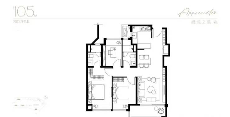 105㎡ 3 房 2 厅 2 卫