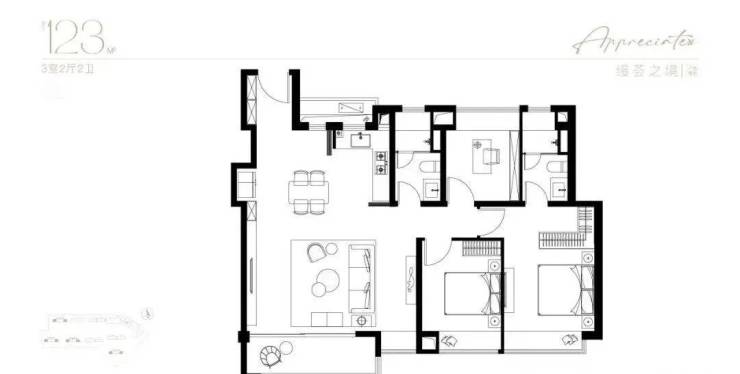 123㎡ 3 房 2 厅 2 卫