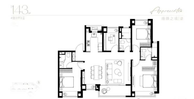 143㎡ 4 房 2 厅 3 卫