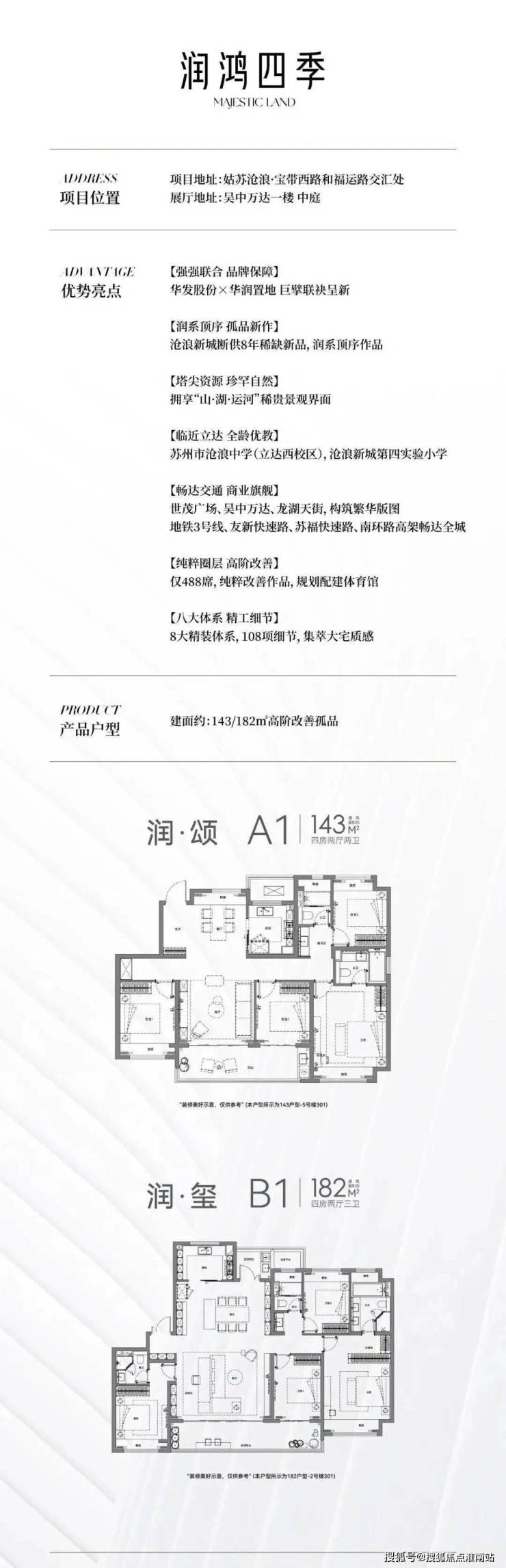 润鸿四季,建面约143m/182m高阶改善孤品,