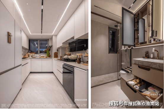 设计深度贴合日常需求,让精装不止于“豪”更在于“舒”。厨房采用人体工学高低台布局,烹饪区低于水槽区,契合手臂自然下垂的舒适角度,让烹饪动作行云流水,大幅减轻家务疲劳。更精准捕捉女性需求,卫生间专门配备科勒美妆龙头、美妆镜柜、美妆冰箱,搭配“顶+面双补光照明”,将“女本位”关怀落到细节,这般细致在同类项目中实属难得。