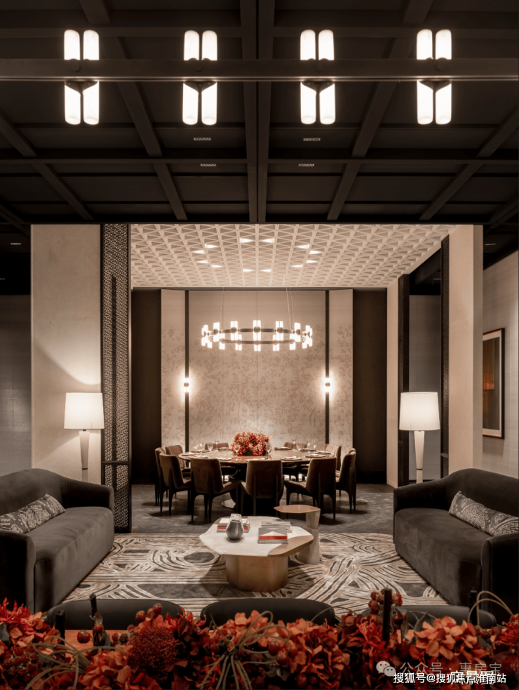 私宴厅,配备专业级厨房,大人的社交聚餐、小孩子的生日聚会,精准地覆盖每个人的需求。酒廊背景墙,loewe同款营造的限定松弛环境,引领着法式的优雅与艺术氛围流淌至每个角落。